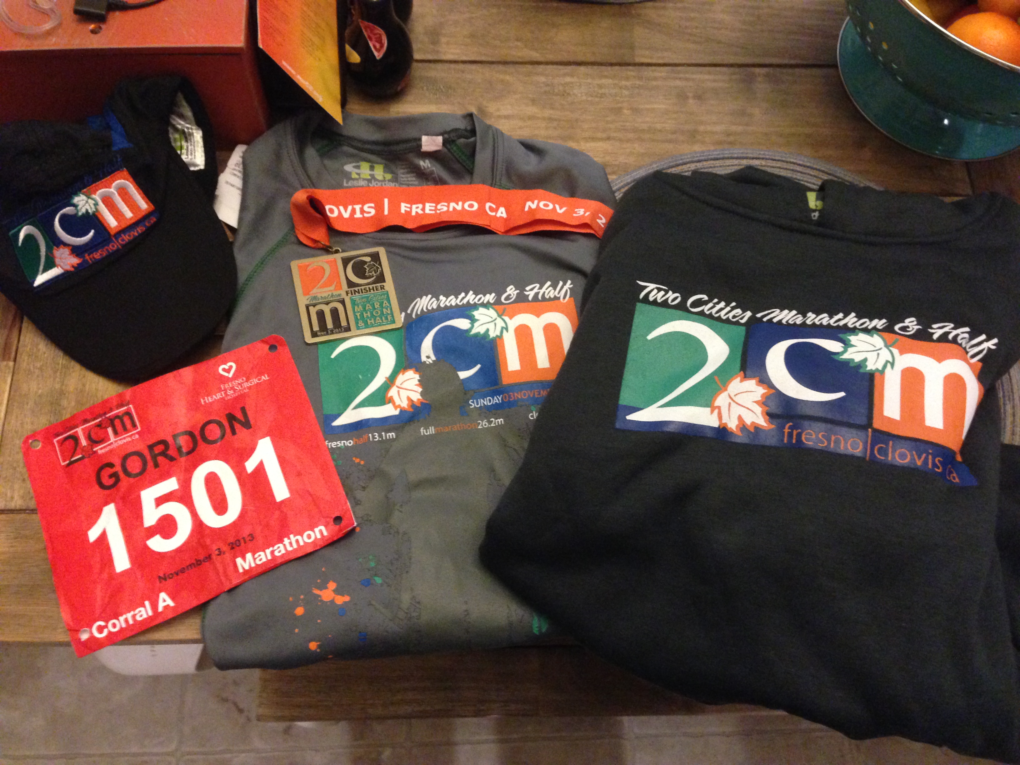On a side note, let me praise this race, the organizers, the volunteers. The swag. Medium sized marathoning done right. Great local support, solid expo. Super loot: race shirt, cool medal, finisher’s hoodie, AND a running hat! The Fresno-Clovis folks have a great course and a race anyone would enjoy signing up for and racing.